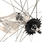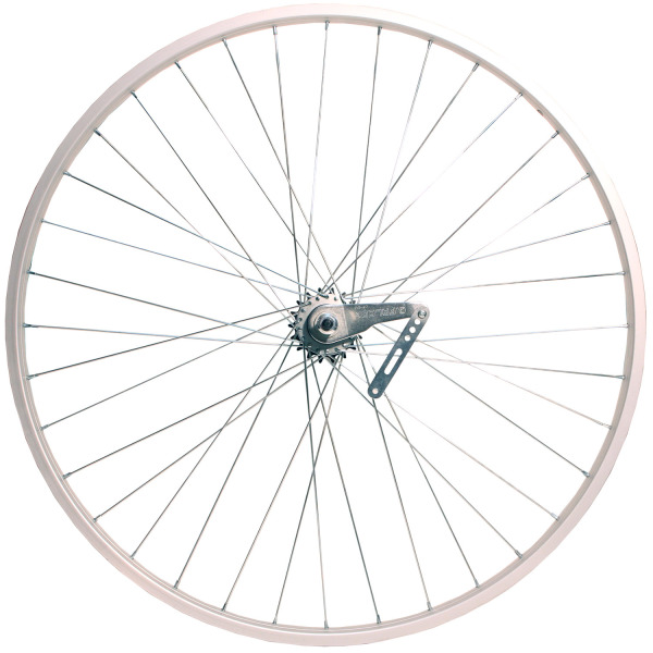 Заднее колесо 28", обод одинарный алюминиевый без пистонов серебристый, втулка тормозная.