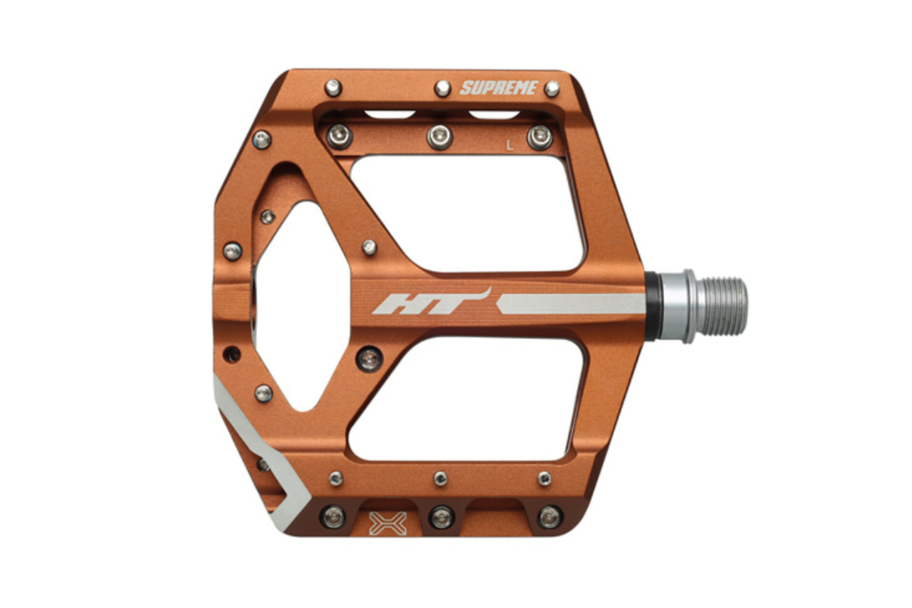 HT ANS10 - лучшее решение для агрессивного катания в MTB дисциплинах с постоянными прыжками и жесткими приземлениями. Станет отличным вариантом для для любителей даунхилла, фрирайда, дёрта и слоупстайла. Корпус педалей выполнен из алюминия с применением ЧПУ обработки. Собрана с использованием технологии EVO + - втулки скольжения IGUS работают в паре с упорным подшипником, что дает легкую плавность вращения и высокую устойчивость к влаге, пыли, грязи, ударным нагрузкам. Корпус фиксируется на Cr-Mo ось, выполненную с CNC обработкой и имеющую стандартную резьбу 9/16". К тому же в своем сегменте обладает уверенными преимуществами - вес пары 368 грамм, средняя высота профиля, площадка размером 100 х 100 мм, 20 сменных шипов на одну педаль. Оптимальный контакт и уверенную стойку на педалях получиться достичь при использовании специализированной, бесконтактной MTB обуви. Педали не комплектуются светоотражателями и в продажу поступают в различном цветовом решении.