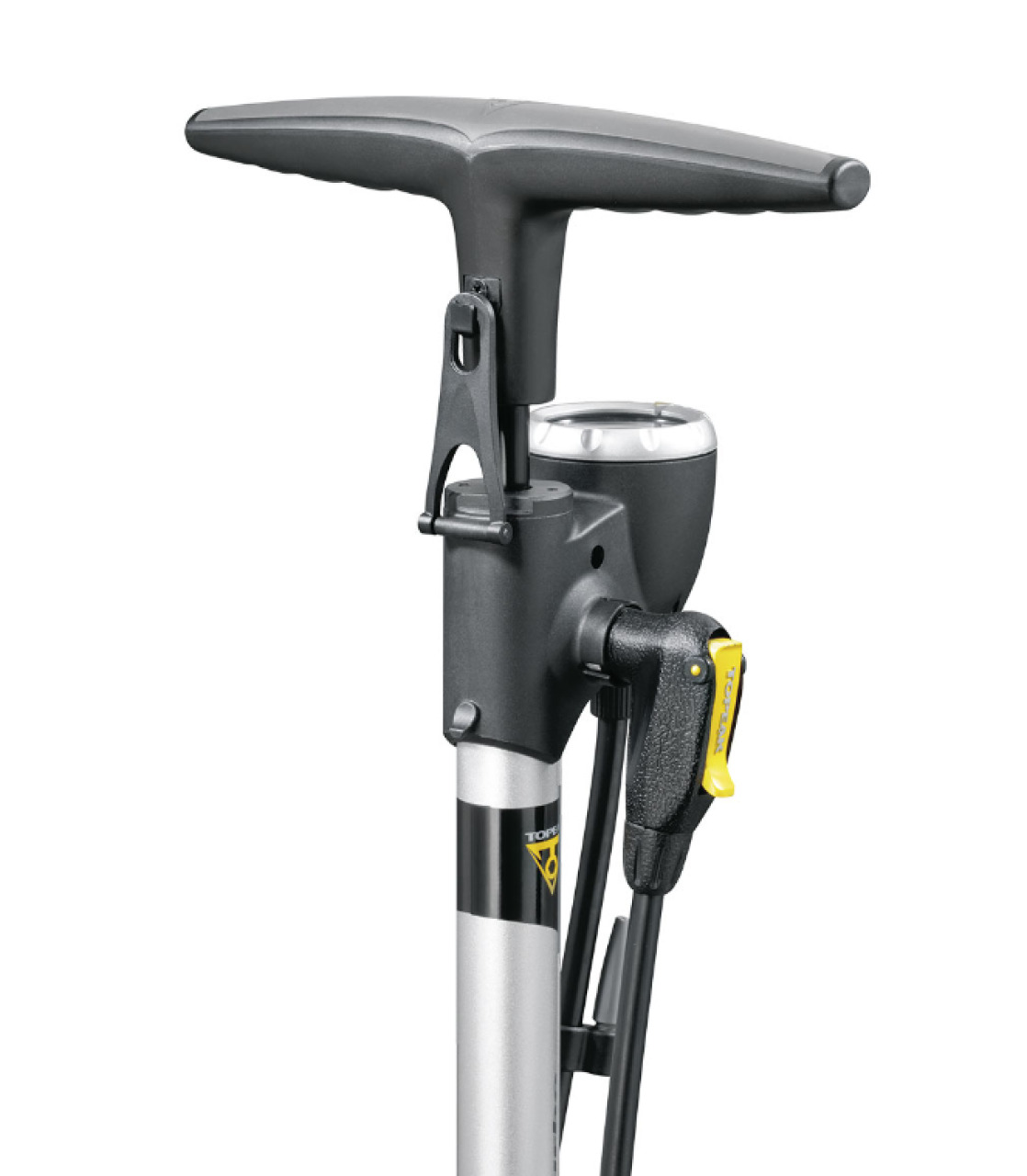 Напольный насос Joeblow Turbo - отличное сочетание практичности и высокого качества от именитого производителя качественных аксессуаров и инструментов Topeak. Корпус насоса выполнен из прочного и лёгкого алюминиевого сплава с сатинированным покрытием и прорезиненной ножной площадкой. Эргономичная Т-образная ручка поршня обеспечивает удобный хват и благодаря большому диаметру, препятствует соскальзыванию рук по время интенсивной работы, а для предотвращения случайного раскрытия имеется фиксатор. Аналоговый манометр установленный в верхней части корпуса оснащён клапаном спуска давления. Насос имеет удлиненный шланг 100 см, с головкой SmartHead которая подходит для ниппелей Presta, Schrader и Dunlop. Комплект включает в себя, иглы для накачивания мячей и детских игрушек, а так же латунный переходник для ниппелей Dunlop.