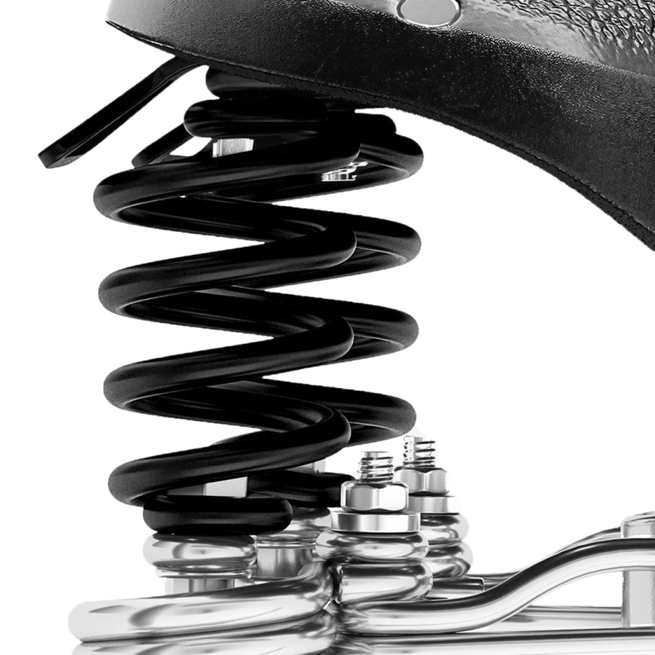 Пружины способствуют оптимальной амортизации на городских трассах, а стальные заклёпки и логотип бренда придают седлу неповторимый внешний вид. Двойные стальные рельсы обеспечивают долговечность эксплуатации.
