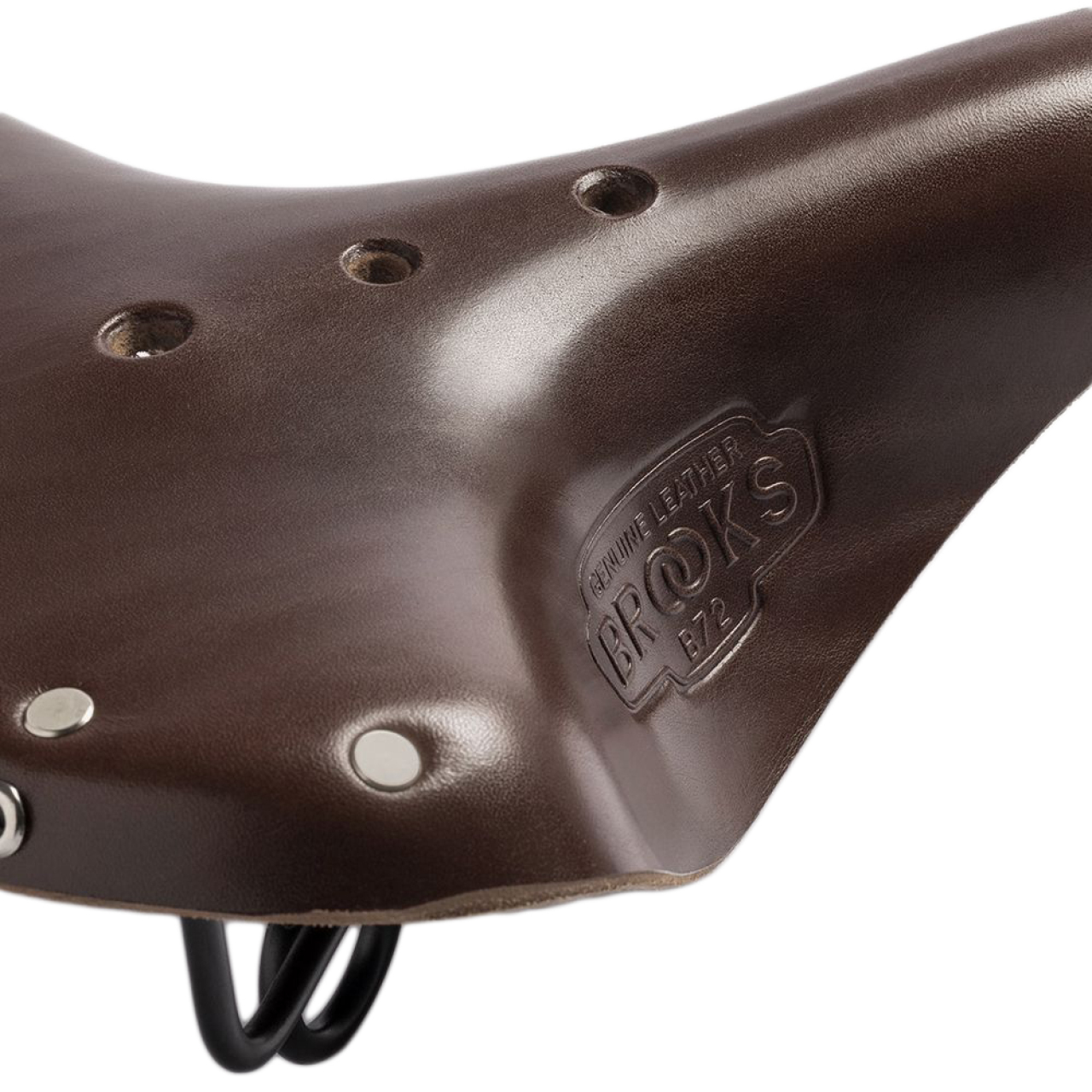 Трубчатые стальные заклёпки и логотип бренда придают седлу особый стиль. Модель B72, впервые появившаяся в 30-х годах прошлого века, отличается усовершенствованными рельсами с петлями, что обеспечивает дополнительный комфорт для любителей неспешных поездок на велосипеде. Это классическое и прочное седло, которое весит меньше, чем другие модели с пружинами, станет отличным выбором для владельцев шоссейных и горных велосипедов.