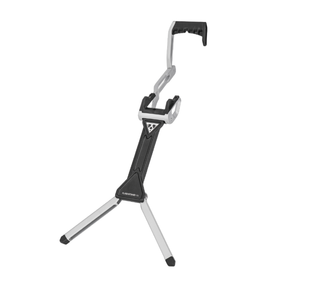 Стойка для настройки и хранения шоссейного велосипеда Flashstand RX от именитого производителя топовых аксессуаров и инструментов Topeak. Стойка выполнена из алюминиевого сплава с матовым покрытием и представляет собой компактную конструкцию с подставкой под кареточный узел и фиксатором за нижнюю часть рамы. Компактная конструкция быстро собирается в компактные размеры удобные для хранения. Максимальная нагрузка составляет до 11-ти кг.