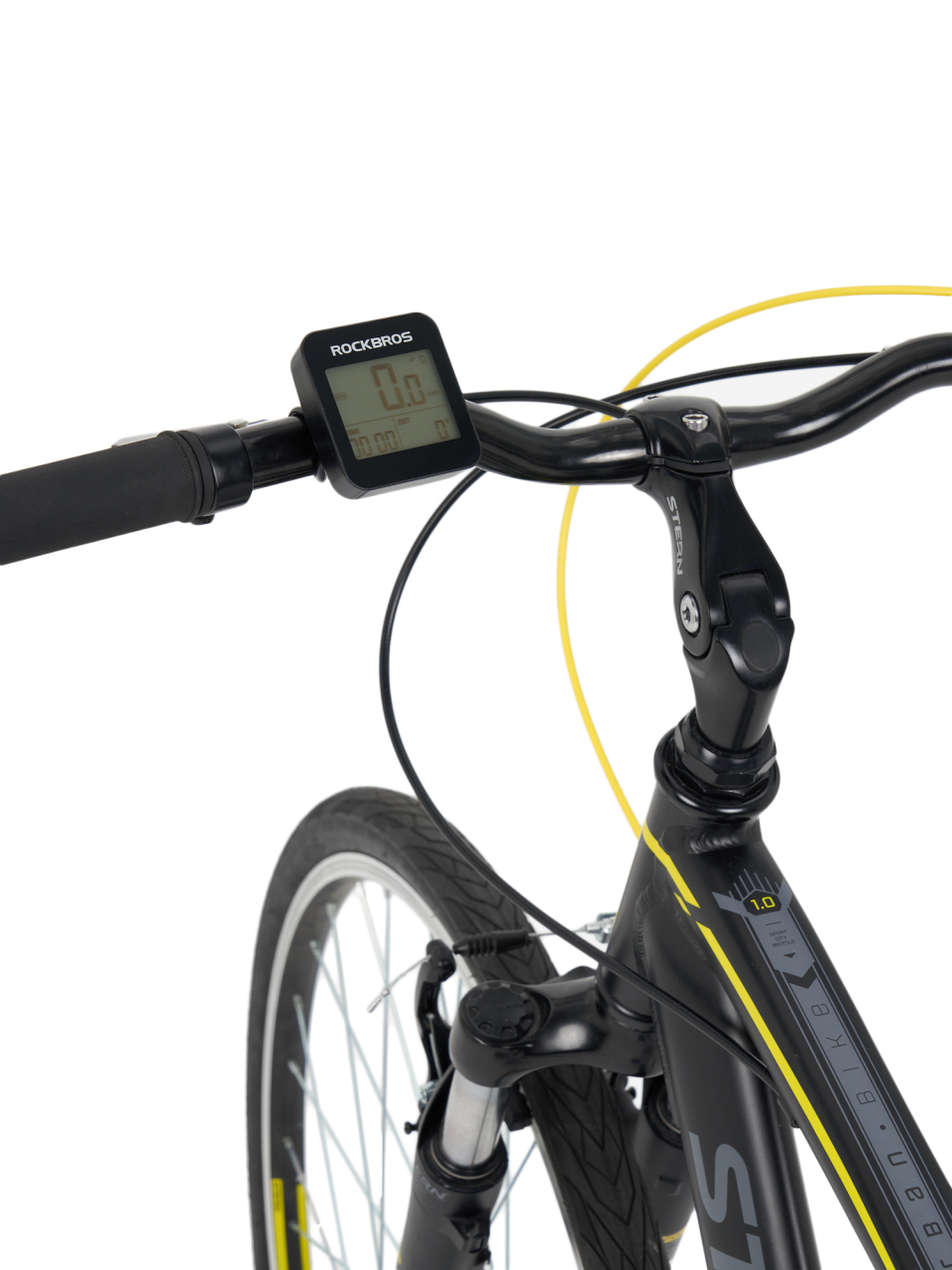 Беспроводной велокомпьютер Rockbros G1. Обладает одним из высоких показателей баланса в отношении цены и технологичности. Дизайн аккуратный и современный, благодаря беспроводному датчику, гармонично размещается на велосипеде, без лишних проводов. Выполнен из прочного пластика с влагозащитой класса IPX7, что позволяет использовать компьютер в дождливую погоду и не волноваться о его сохранности. Он имеет достаточно большой информативный дисплей, в сравнении с моделями-одноклассниками, а фирменный крупный шрифт позволит легко считывать показания даже в условиях тряски во время поездки. В распоряжении 8 самых необходимых функций: определение текущей, средней и максимальной скорости благодаря smart GPS, текущий и общий пробег велосипеда, расход калорий на основе текущего и общего пробегов. Также, есть базовый счет времени - часы, время в пути и общее время поездок. Велокомпьютер крепится на руль велосипеда, считывающий датчик и магнит (не идут в комплекте) - на ногу (штаны вилки) и спицу, всё необходимое для установки имеется в комплекте. Крепление является быстросъемным. Использование велокомпьютера позволяет не оставить без внимания все достижения и результаты Ваших заездов или велопрогулок, а также удобно рассчитывать пробег велосипеда для обслуживания и ТО.